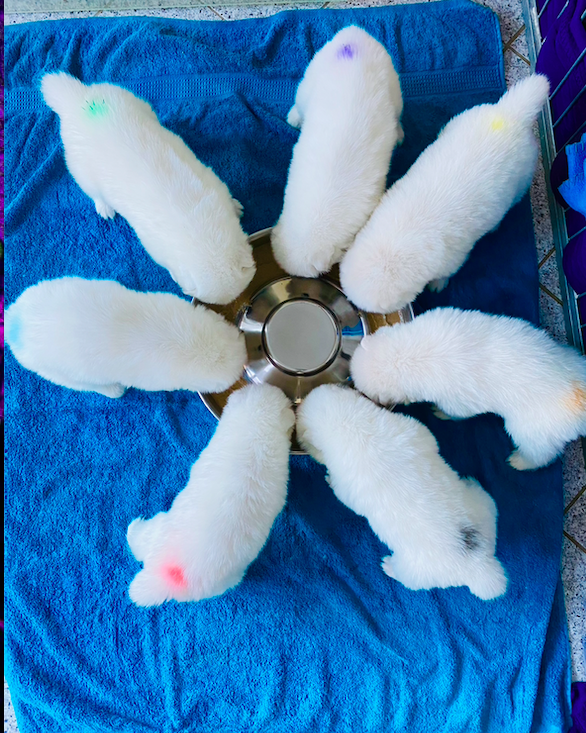 Am 30.09.2021 hat unsere 💙Saya💙 sieben putzmunteren Welpen - 3 Jungs 💙🖤💚 & 4 Mädels 💛💜🧡❤️- das Leben geschenkt. Mammi und Welpies sind wohlauf 🥰