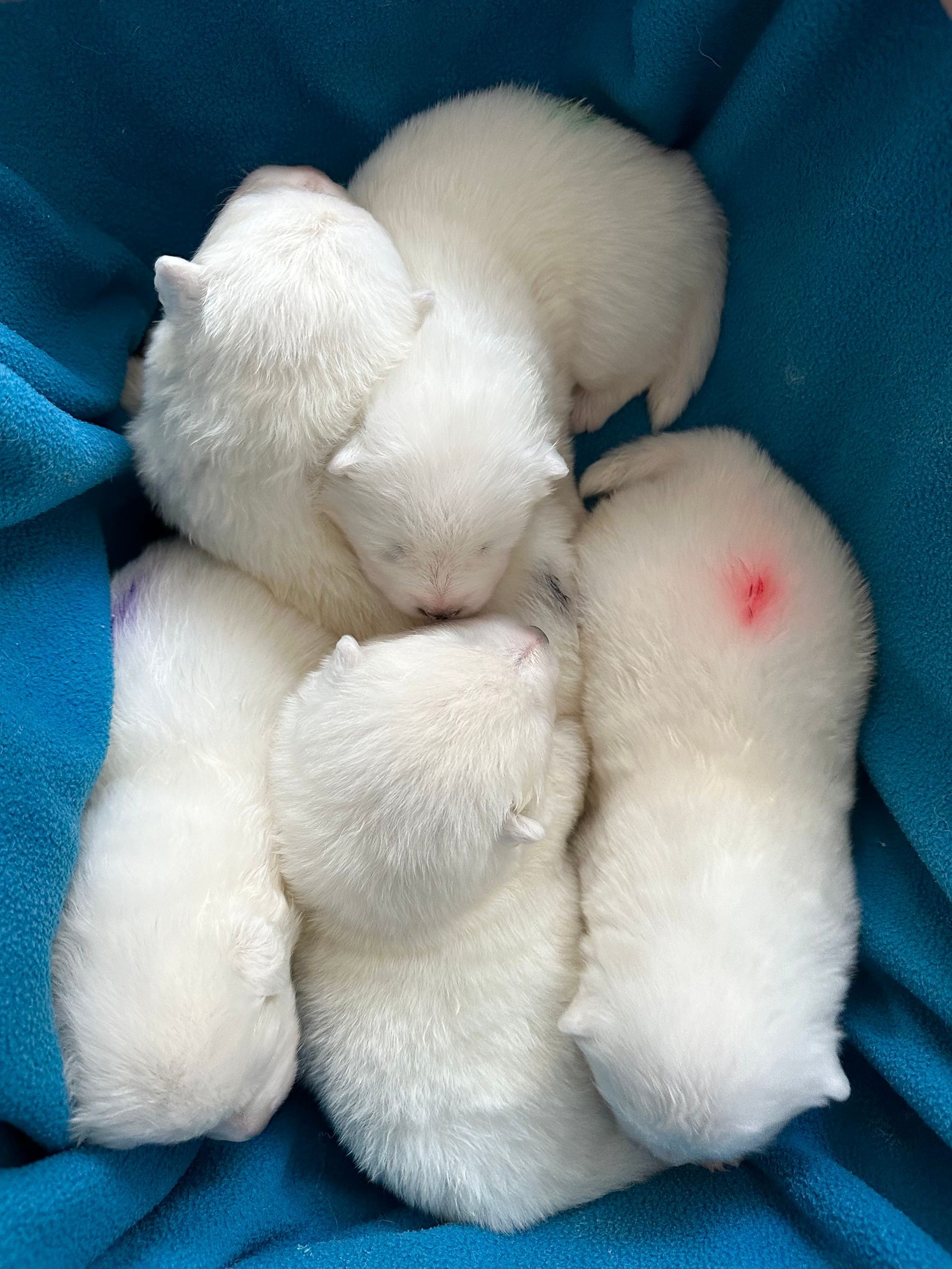 Voller Stolz hat unsere Saya am 21.08.2023 5 wunderbare Welpen zur Welt gebracht, 3 Rüden und 2 Hündinnen 😊.
