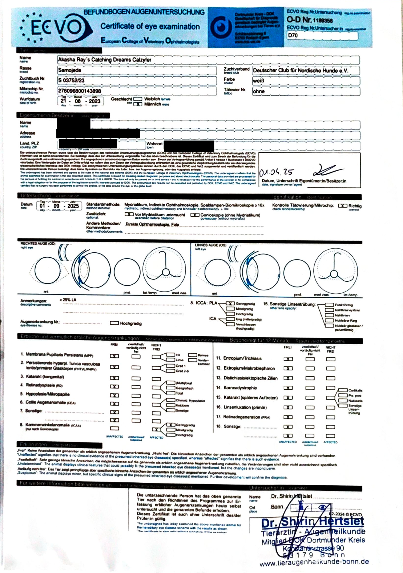 Augen/Eyes: o.B. / clear